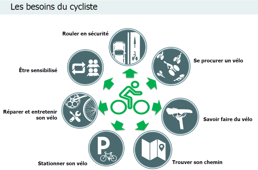 en apportant des réponses concrètes aux usagers : itinéraires jalonnés, stationnements et services,