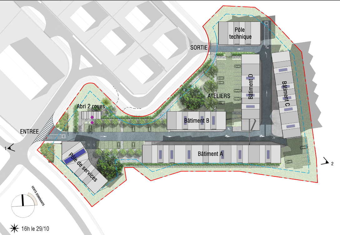 • un pôle ateliers : mise à disposition de 18 ateliers de 60 m², 90 m² ou 120 m². Pour répondre à tous les besoins une partie de ces ateliers est modulable.