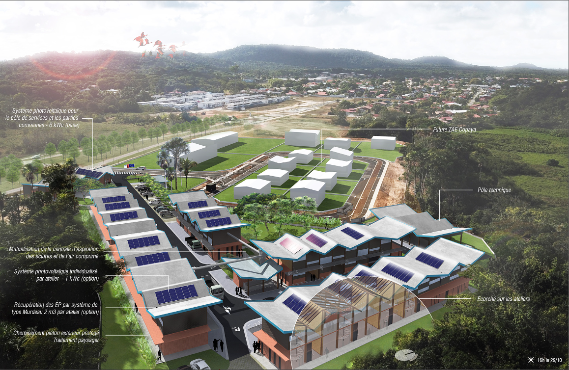 Les travaux de l’ensemble situé au sein de la Zone d’Activités Économiques (ZAE) de Copaya à Matoury ont débuté par les terrassements en mars dernier.